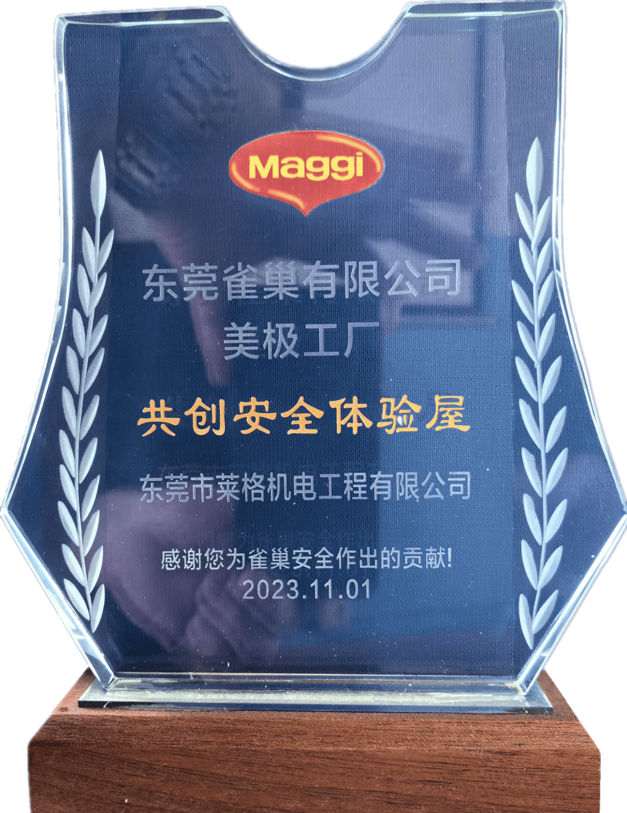 我公司于2023年11.01日獲得雀巢公司的共創(chuàng)安全體驗屋獎項